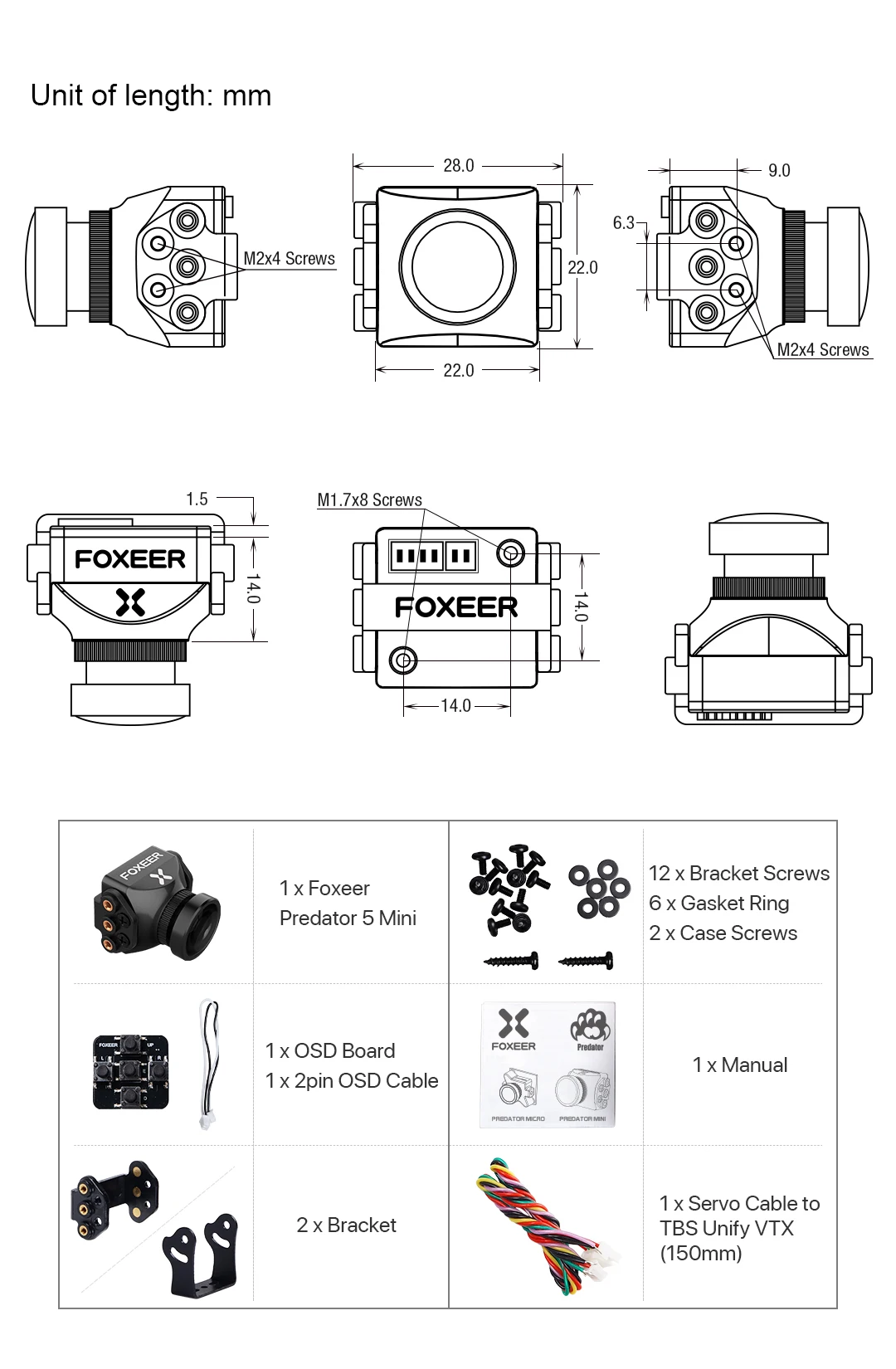 | Flight OSD | Voltage/Cam Title/Time/Cross Hair |