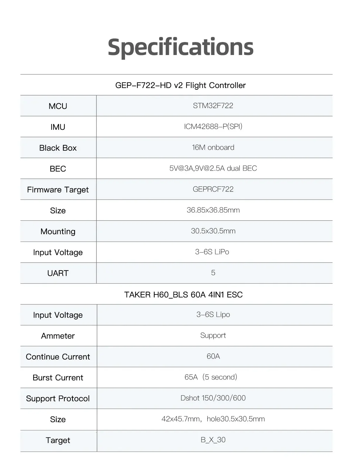 GEPRC TAKER F722 Stack - F7 FC + 60A BLHeli_S ESC (30x30)