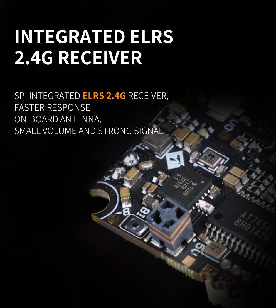 - Built-in ELRS: Comes with an integrated SPI ExpressLRS receiver for long-range and low-latency control.